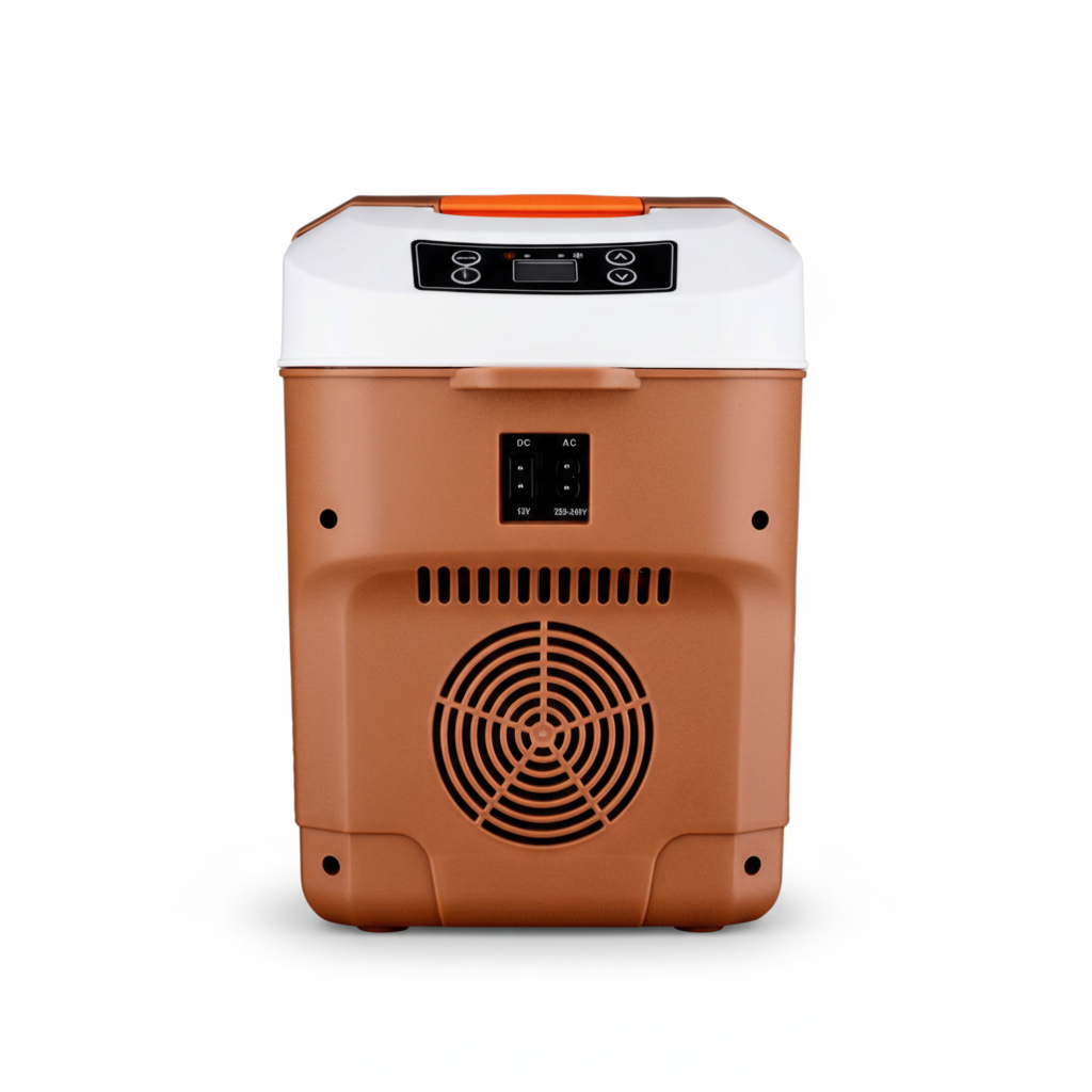 Specifications: 10L | 12V/24V/240V | 50–56W | Cool: ~22°C below ambient | Heat: up to 65°C | 425 × 220 × 310 mm |Colour Brown Orange with white | High‑density PU insulation